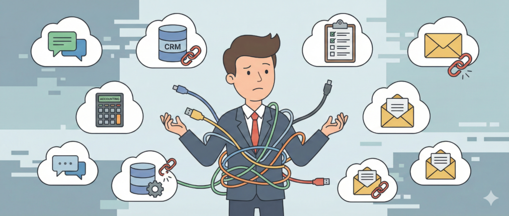 本来、仕事を楽にするはずのツールが分断され、その隙間を人間が手作業で埋めている状態。これは、まるで「SaaSカオス」とでも呼べる状況です。