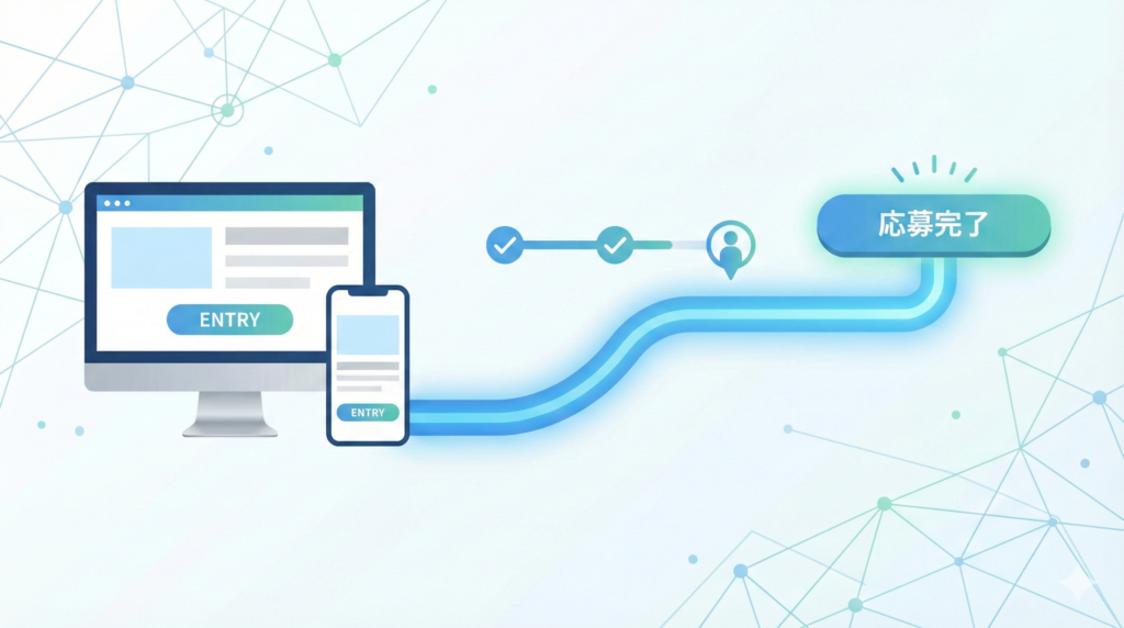 魅力的なコンテンツで入社意欲を高めても、応募までの手順が煩雑であれば、求職者は途中で意欲を失ってしまいます。迷いなく応募完了まで導くWEBデザインの設計は、採用候補者を逃さないための最終工程です。